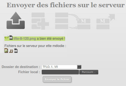 Une fois que vous avez saisi une mélodie à l'aide du logiciel Lilypond en suivant notre méthodologie, vous pouvez l'ajouter à la base. Vous devrez fournir les fichiers .ly, .png, .pdf et .mid (ou .midi).