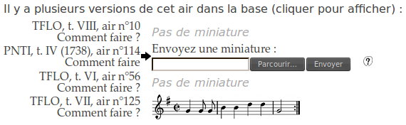 Les résultats ne sont pas des mélodies mais des "corpus de mélodies". Cela permet de voir d'un seul coup toutes les dénominations rencontrées dans la base puis d'accéder directement aux différentes versions.