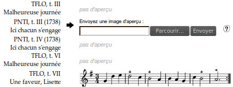 La base de donnée de ce site est "orientée musique", elle permettra de remplir le site theaville.org, qui liera texte, métrique et musique.